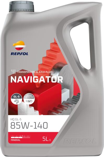 REPSOL Navigator HQ GL-5 85W140 5LExtreme Pressure hajtóműolaj járművek differenciálműveihez és hipoid sebességváltókhoz, valamint Voith véghajtásokhoz, amikor API GL-5 olaj használata van előírva. Specifikációk:API GL-5 VOLVO 97310 ZF TE-ML 07A/08/16C/16D/21A DAF API GL-5 MIL-L-2105 DKiszerelés: 5 liter