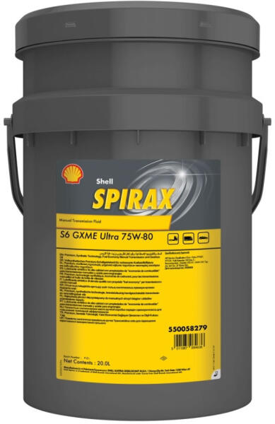 | Megnevezés | SHELL SPIRAX S6 GXME UL.75W-80 20 Liter |